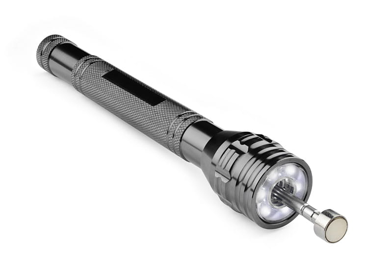 Latarka LED z niezwykle przydatna funkcją magnesu umieszczonego na wysuwanym teleskopowym ramieniu. Końcówka ramienia zgina się zapewniając wygodne dojście w każdą szczelinę. Dzięki tej latarce bez problemu odnajdziemy i wyciągniemy zagubione śrubki, nakrętki czy inne drobne przedmioty.