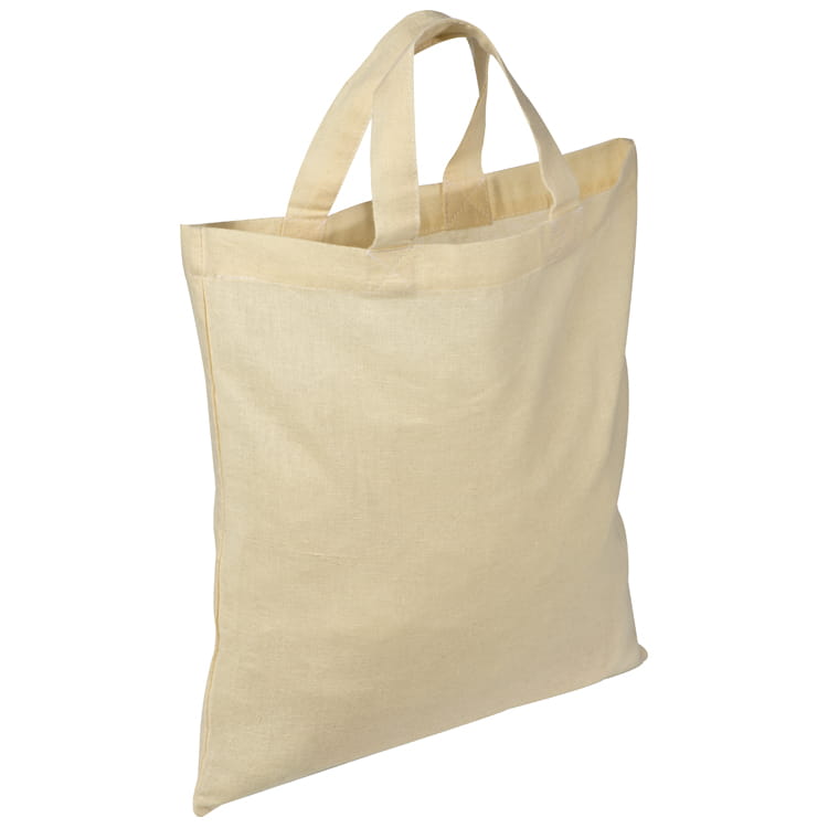 Mała torba bawełniana w naturalnym kolorze z krótkimi uszami.