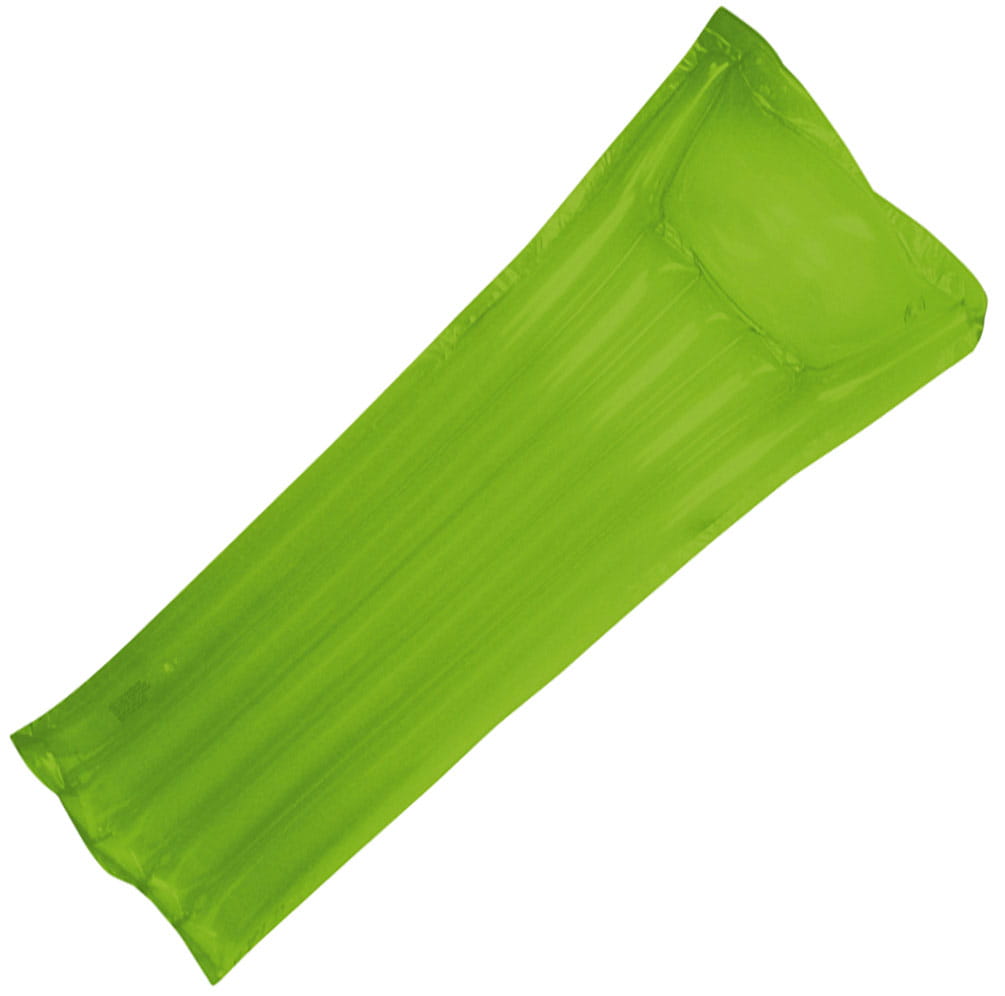 Wygodny, dmuchany materac, wykonany z przezroczystego tworzywa w żywych kolorach, umili każdy pobyt nad morzem czy na kempingu.