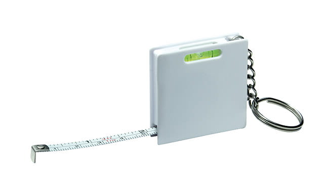Breloczek do kluczy z miarką o długości 1 m i poziomicą.