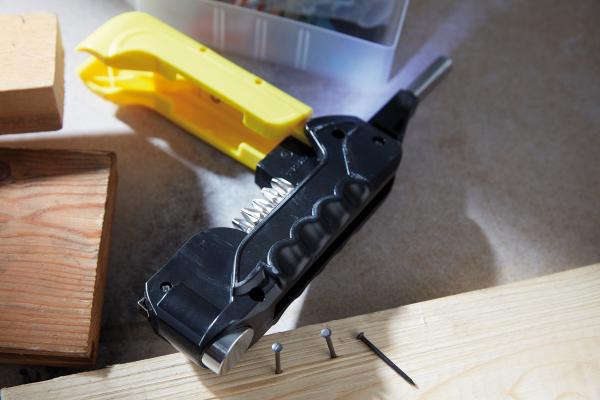 Narzędzie wielofunkcyjne HINGED , 17 możliwych zastosowań, wbudowana poziomica, rozkładany śrubokręt z 12 różnymi końcówkami, światło LED, taśma miernicza 1 m, młotek, pakowane w pudełko.