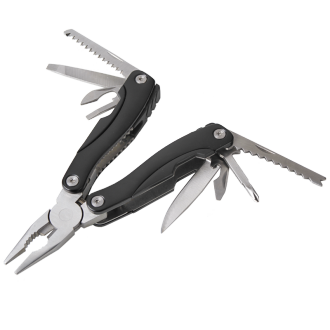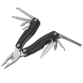 Narzędzie wielofunkcyjne wykonane z stali nierdzewnej w aluminiowej obudowie. Oferowane w 2 kolorach. Pakowane w poliestrowe etui.