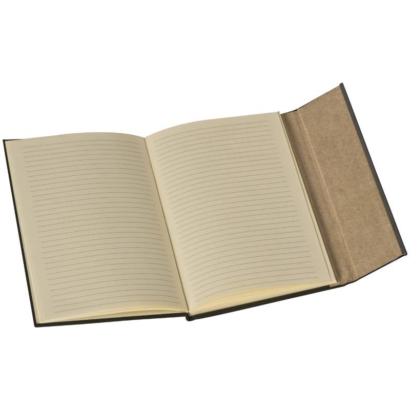 Notatnik format A5 z twardą okładką i magnetycznym zamknięciem. Posiada 96 stron w linie z niebielonego papieru.