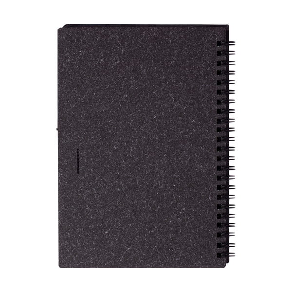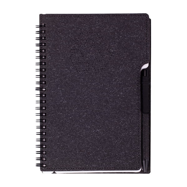 Eko notes w twardej oprawie z dołączonym długopisem w rozmiarze biurkowym (zbliżony do A5 lub większy). 70 kartek w linie (z perforacją), gramatura 70 g/m². Zarówno oprawa jak i papier wykonane zostały z surowców wtórnych. Nadają się one także do kolejnego przetworzenia. Korpus długopisu wykonany z tektury, klip, końcówka i przycisk wykonane z plastiku nadającego się do recyclingu, wkład w kolorze niebieskim. Notes posiada uchwyt na długopis.