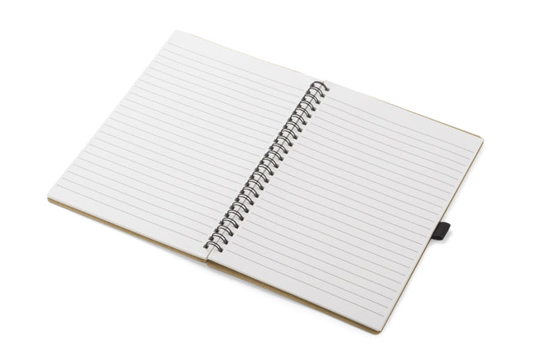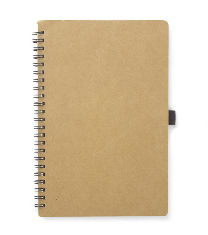 Klasyczny notes na spirali w papierowej, brązowej okładce wraz z miejscem na długopis. Kartki w notesie wykonane są z papieru kamiennego. Papier ten jest wyjątkowo wytrzymały i odporny na wilgoć. Posiada 60 kartek w linie, format A5. Zapakowany w woreczek biodegradowalny.