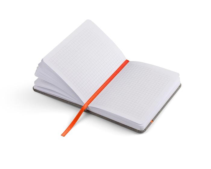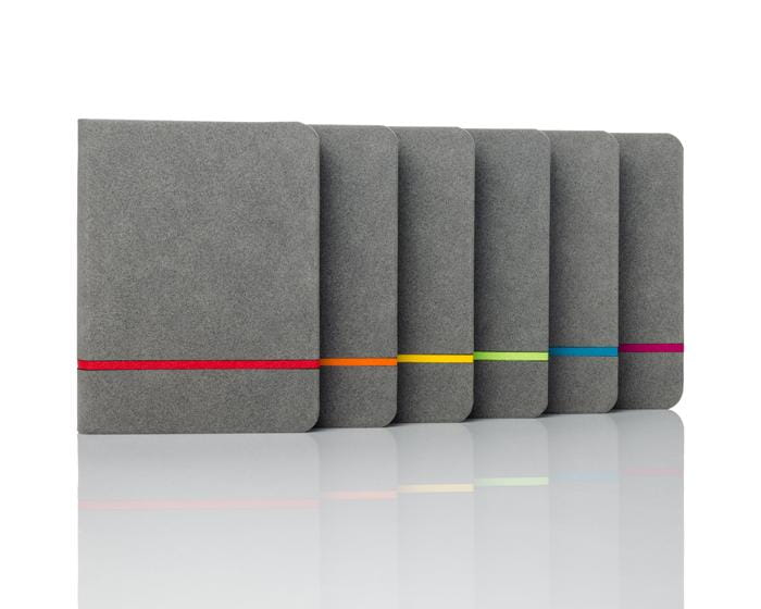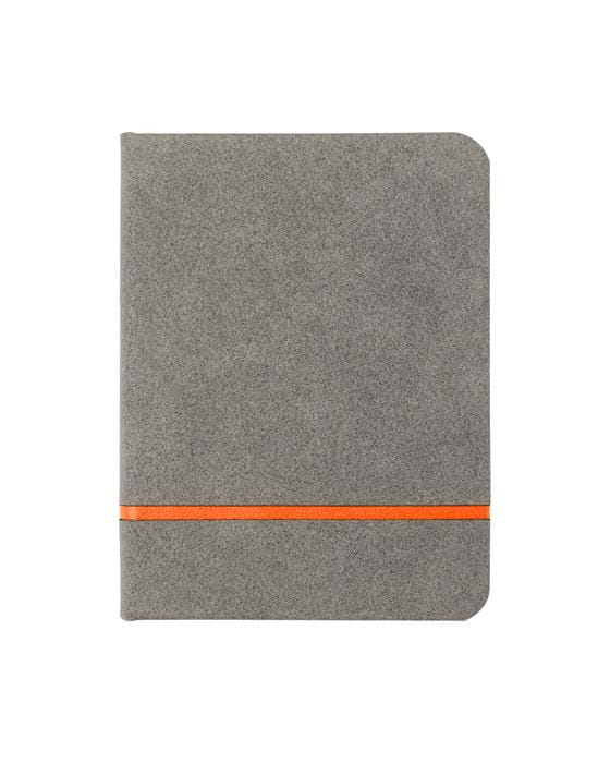 Wyjątkowy notes formatu A6 wyprodukowany w Unii Europejskiej z innowacyjnego materiału - papieru z kamienia. Do produkcji tego papieru nie używa się drewna, celulozy, ani wody, dlatego wytworzenie go jest w 100% ekologiczne. Papier z kamienia jest wyjątkowo odporny na rozdarcia oraz na działanie wilgoci, ulega szybkiej biodegradacji, jest miękki w dotyku i dodatkowo zużywa o 30% mniej tuszu (atramentu). Notes w okładce wykonanej z ekoskóry imitującej zamsz w modnym połączeniu kolorystycznym - szare tło z cienkim paskiem w żywych kolorach. Zakładka - wstążeczka dopasowana kolorystycznie do kolorowego paska na okładce. Posiada 74 kartki w kratkę.