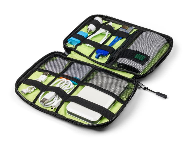 Gadżet niezbędny w podróży. Organizer LOOP jest odpowiedzią na wszystkie plączące się kabelki i słuchawki, gubiący się w plecakupower bank czy selfie stick. Wkładając wszystkie potrzebne w trakcie podróży akcesoria elektroniczne do organizera mamy pewność, że akcesoria będą na swoim miejscu. Organizer wyposażony w 3 mniejsze przegródki, 2 średnie przegródki, 1 dużą przegródkę, kieszeń zamykaną na zamek i miejsce na kartę SD. Wykonany z nylonu 900D