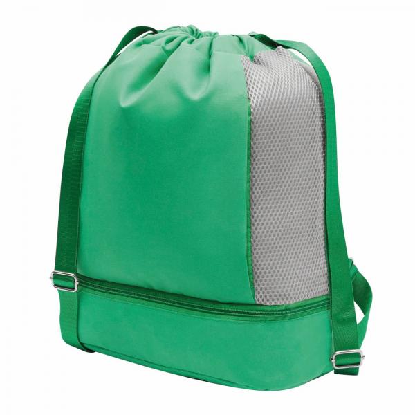 Plecak TRIP: z paskiem do zapinania i paskami na ramię (regulowane), 1 duża komora główna zapinana na zamek z 1 przegrodą wewnętrzną zapinaną na zamek i 2 kieszeniami wsuwanymi, 2 przednie kieszenie pionowe zapinane na zamek, 1 przegroda na dole zapinana na zame