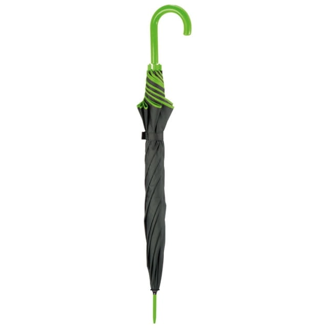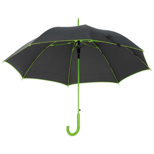 Czarny parasol o wyjątkowym designie. Rączka oraz krawędzie parasola są w tym samym, ale innym niż całość kolorze. Parasol posiada materiałowy pokrowiec. Pojedynczo pakowane w woreczek foliowy.