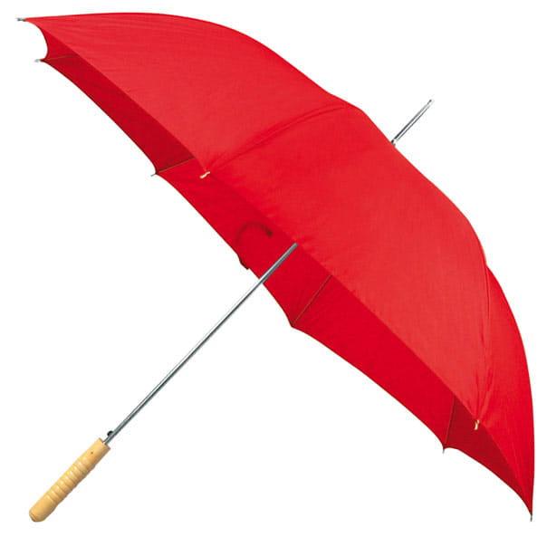 Automatyczny parasol z prostą, drewnianą rączką.