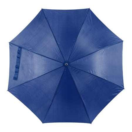 Automatyczny parasol z prostą, drewnianą rączką. Żywe kolory przyciągają wzrok dzięki czemu parasol stanowi skuteczne medium reklamowe.
