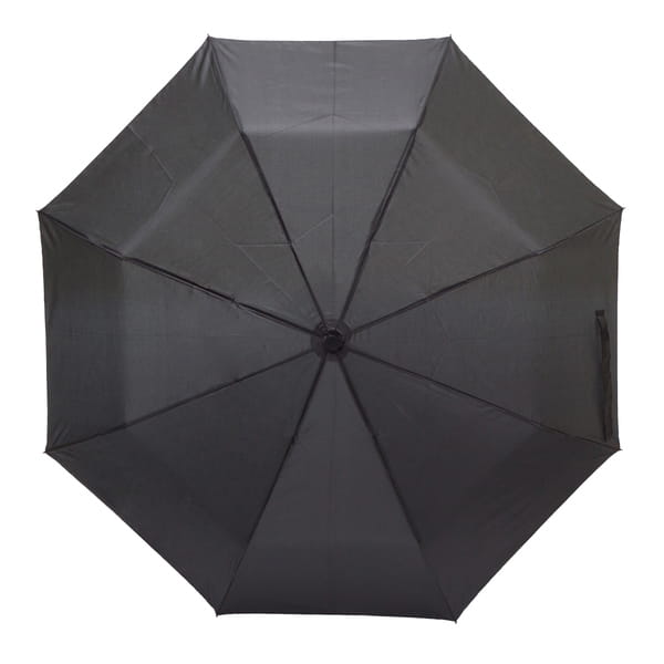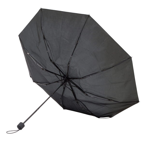 Składany parasol ręcznie otwierany i zamykany. Rama i żebra wykonane z włókna szklanego i aluminium, pałąk z metalu. Plastikowa, gumowana rączka typu soft grip wyposażona w opaskę z taśmy elastycznej. Pakowany w etui poliestrowe. Rozłożony 970 x 970 x 560 mm, złożony 235 x 53 x 53 mm
