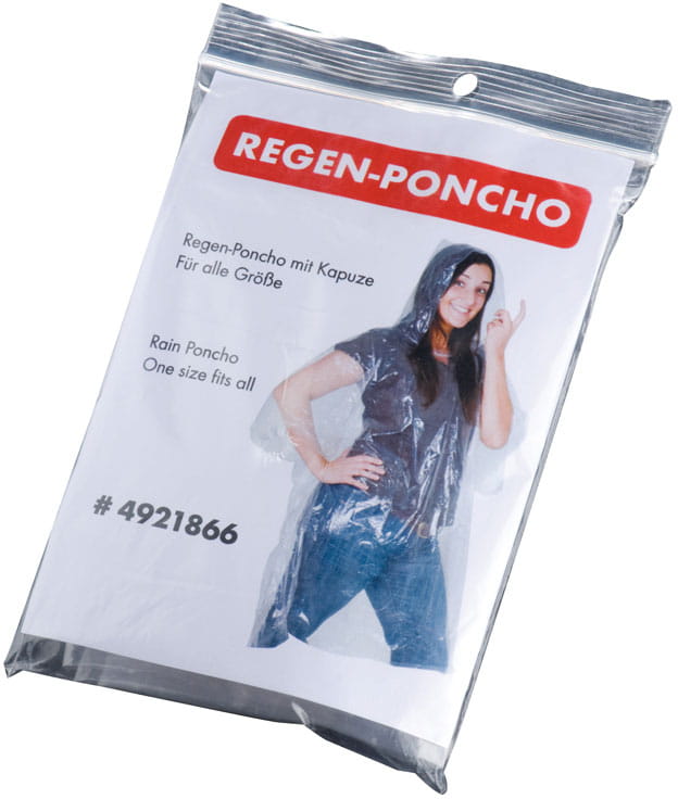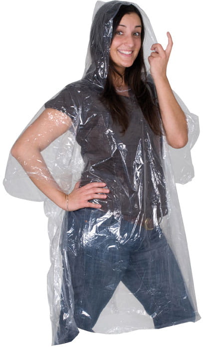 Praktyczna, transparentna peleryna przeciwdeszczowa w uniwersalnym rozmiarze. Bez problemu zmieści się w każdej torebce.