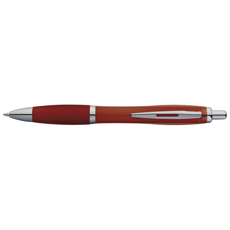 Stylowy, wysokiej jakości długopis. Kombinacja kolorowego, transparentnego korpusu i błyszczących dodatków - skuwki, pierścienia, włącznika i metalowego klipu decydują o jego atrakcyjnym wyglądzie. Antypoślizgowa gumka na korpusie i duży, niebieski wkład sprawiają, że pisanie jest łatwe i wygodne.