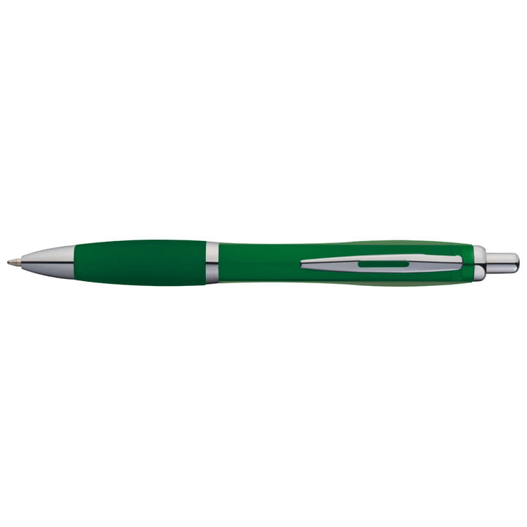 Stylowy, wysokiej jakości długopis. Kombinacja kolorowego, transparentnego korpusu i błyszczących dodatków - skuwki, pierścienia, włącznika i metalowego klipu decydują o jego atrakcyjnym wyglądzie. Antypoślizgowa gumka na korpusie i duży, niebieski wkład sprawiają, że pisanie jest łatwe i wygodne.