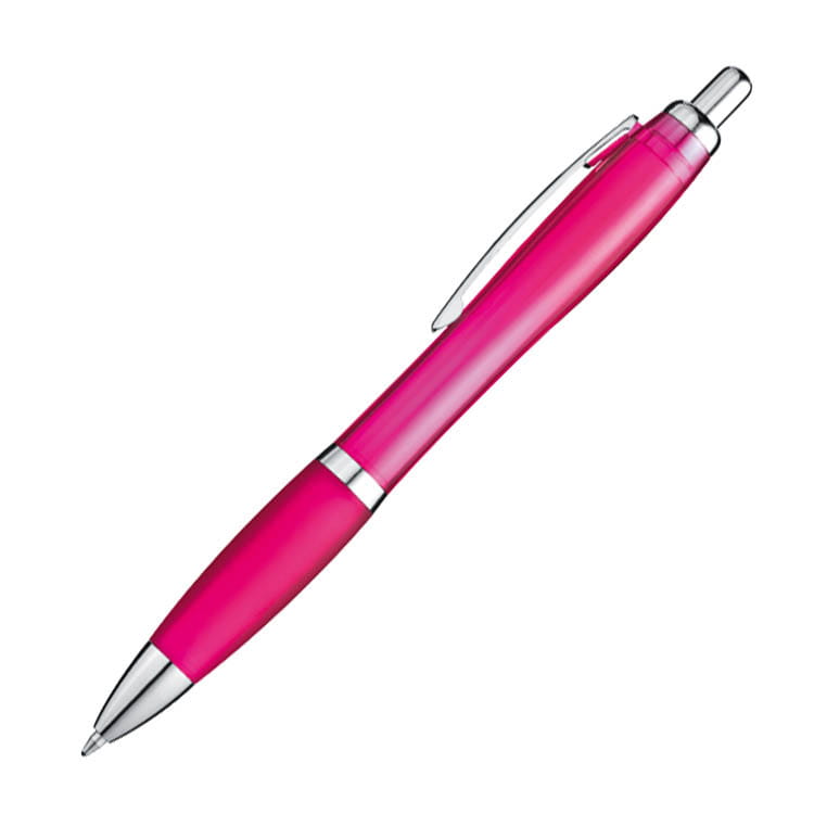 Stylowy, wysokiej jakości długopis. Kombinacja kolorowego, transparentnego korpusu i błyszczących dodatków - skuwki, pierścienia, włącznika i metalowego klipu decydują o jego atrakcyjnym wyglądzie. Antypoślizgowa gumka na korpusie i duży, niebieski wkład sprawiają, że pisanie jest łatwe i wygodne.