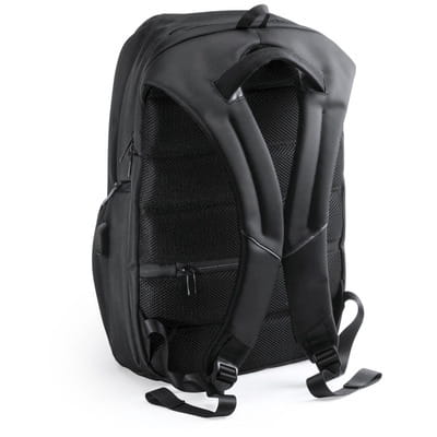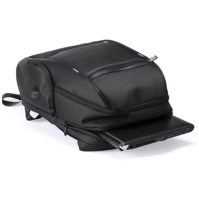Nieprzemakalny plecak, miękka przegroda na laptopa, gniazdo USB do ładowania telefonów (power bank nie jest dołączony), przednia kieszeń zamykana na zamek, miękki tył i paski na ramię