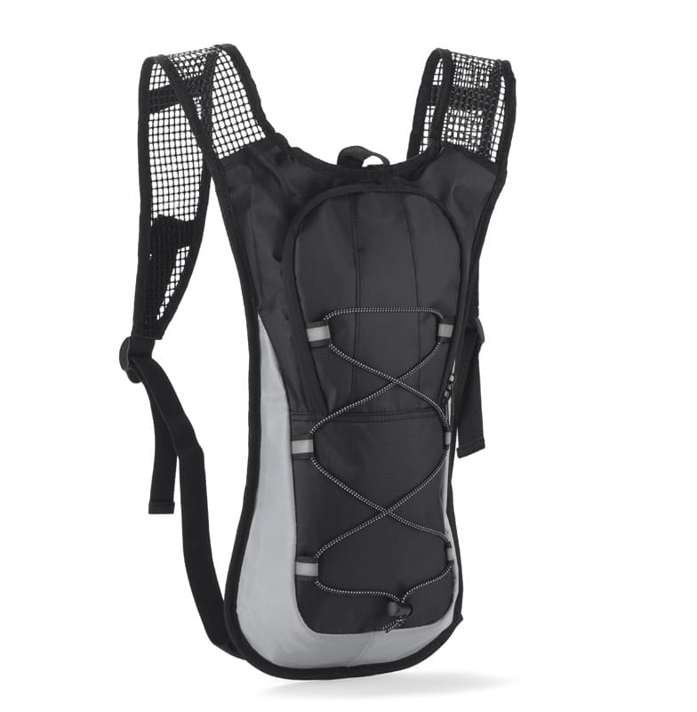 Plecak rowerowy RODE wykonany z wytrzymałego poliestru 420D posiada miejsce na bukłak, siateczkowe szelki z paskami odblaskowymi oraz gumkę ściągającą z przodu. Plecak ma usztywniony tył z elementami miękkiej siateczki dla podniesienia komfortu. Pojemność plecaka: około 3,2L.