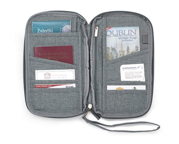 Wykonany z poliestru 600D portfel MARCO to niezbędnik każdego podróżnika. Posiada wiele różnej wielkości przegródek i jest zapinany na zamek z zawieszką ułatwiającą trzymanie portfela.