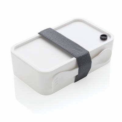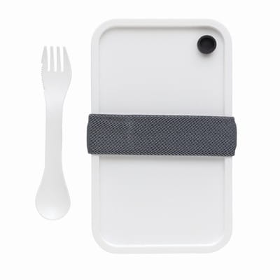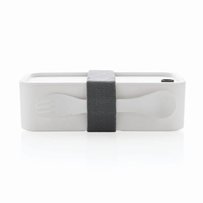 Pudełko śniadaniowe, lunchbox o pojemności 1200 ml, wykonane z PP, w komplecie łyżkowidelec i elastyczny pasek, można myć w zmywarce i używać w kuchence mikrofalowej
