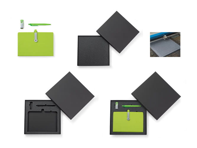 Czarne pudełko wykonane z mocnego, solidnego materiału. Wewnątrz wyłożone jest pianką, którą można dostosować pod wybrane produkty. Możliwość stworzenia własnego zestawu. Pudełko sprzedawane jest bez wyposażenia.