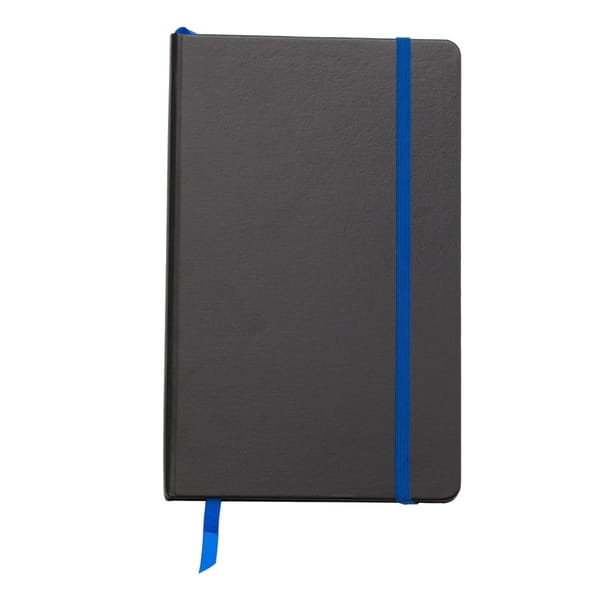 Notatnik w twardej oprawie. 80 kartek w kratkę o gramaturze 70 g/m2. Papier kremowy chamois. Zamykany elastyczną taśmą. Rozmiar biurkowy.