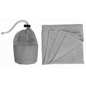 Ściereczka z mikrofibry CLEANER, bardzo chłonna i szybkoschnąca, miękka struktura powierzchni, w siatkowym woreczku ze sznurkiem i stoperem.