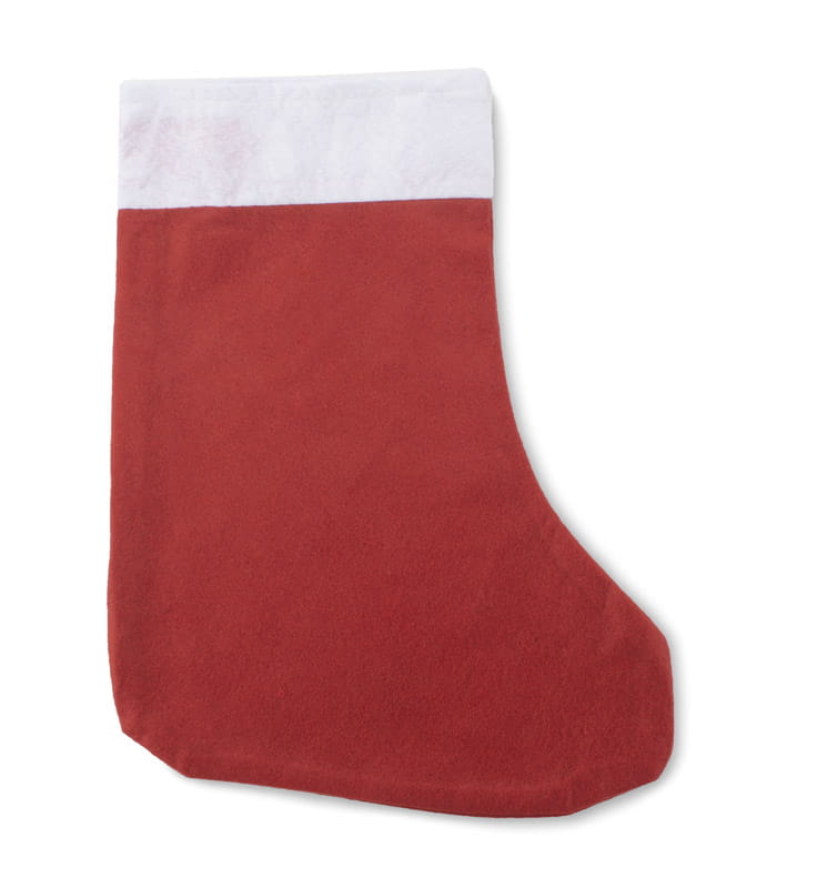 Tradycyjny świąteczny gadżet: czerwono–biała skarpeta na prezenty. Wykonana jest z przyjemnego w dotyku filcu. Wysokość skarpety to 35 cm. Skarpeta jest bardzo pojemna, można ją wykorzystać do pakowania upominków. Znakowanie możliwe po obydwu stronach.