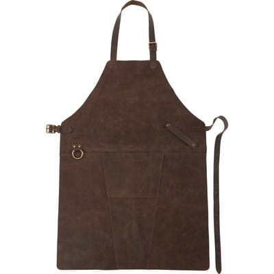Skórzany fartuch kuchenny z kieszenią przednią i metalowymi elementami