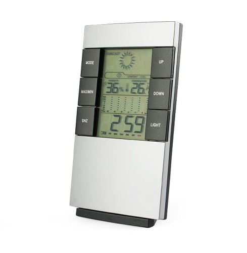 Używając tej nowoczesnej stacji prognozowanie pogody nie będzie już stanowiło problemu. Stacja posiada następujące funkcje:termometr (max/min), higrometr (max/min), zegar z budzikiem, kalendarz, biometr, przewidywanie pogody, podświetlenie ekranu.