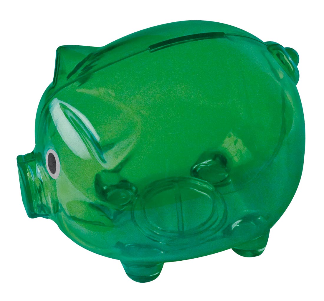Zabawna świnka - skarbonka wykonana z przezroczystego plastiku! Dostępna w wielu kolorach. Pakowana w kartonik.
