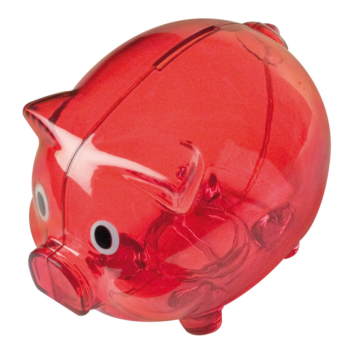 Zabawna świnka - skarbonka wykonana z przezroczystego plastiku! Dostępna w wielu kolorach. Pakowana w kartonik.