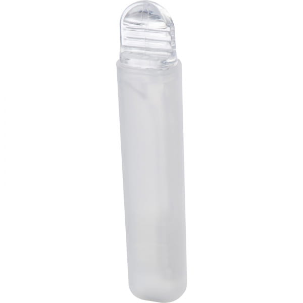 Szczoteczka podróżna o niewielkim rozmiarze. Po rozłożeniu, główkę szczoteczki można zamontować na etui, dla wygody użytkowania.