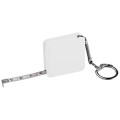 Stalowa miarka o długości 1 m w kwadratowej obudowie z kolorowego plastiku, zawieszona na praktycznym breloku.