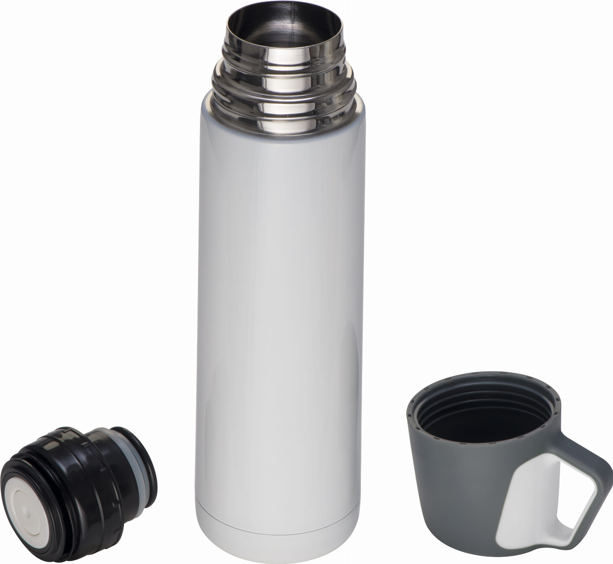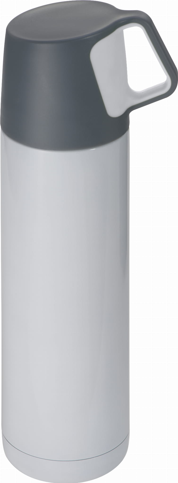 Praktyczny termos wykonany ze stali nierdzewnej o poj. 500 ml. wyposażony w kubek o nietypowym kształcie.