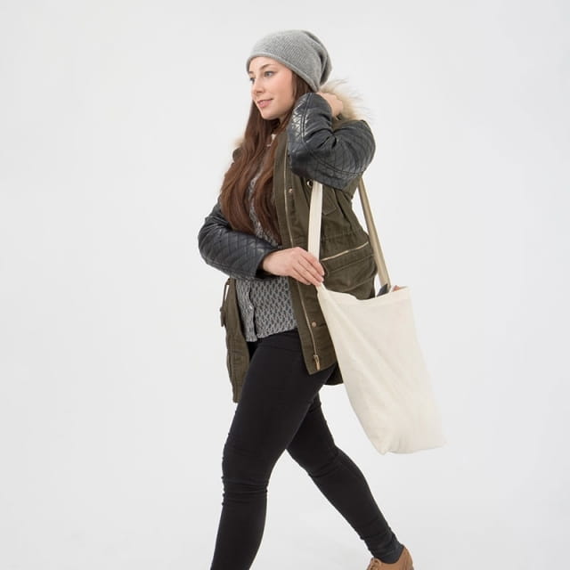 Torba bawełniana z 1 długim uchwytem, wykonana z grubego, wytrzymałego materiału.