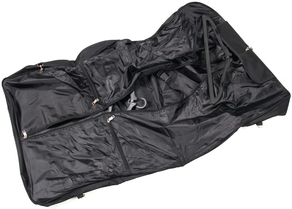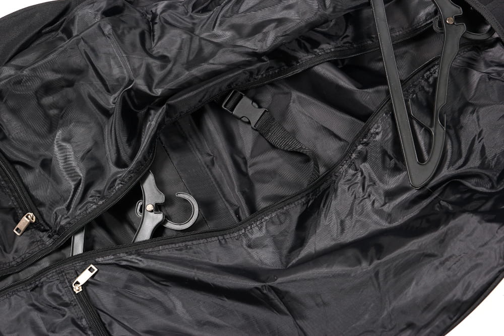 Idealna w każdej podróży! Dzięki tej praktycznej torbie na garnitur wykonanej z wysokiej jakości poliestru z wieloma przegródkami na zamek oraz odpinanym paskiem na ramię, Twój garnitur pozostanie gładki podczas podróży. W górnej części znajduje się wieszak, więc możesz w każdej chwili powiesić torbę w wygodnym miejscu. Wszystkie rzeczy, których potrzebujesz w podróży zmieszczą się bez problemu.