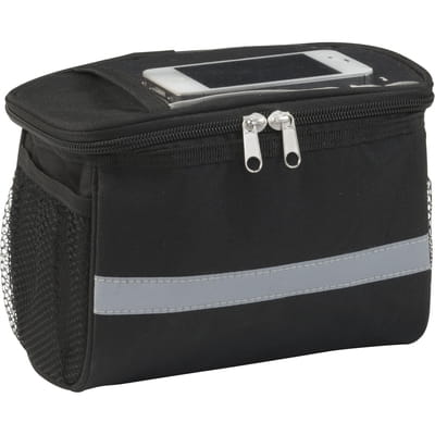 Rowerowa torba termoizolacyjna na zamek, na górze kieszeń PVC, odblaskowy pasek, siateczkowe kieszenie po bokach