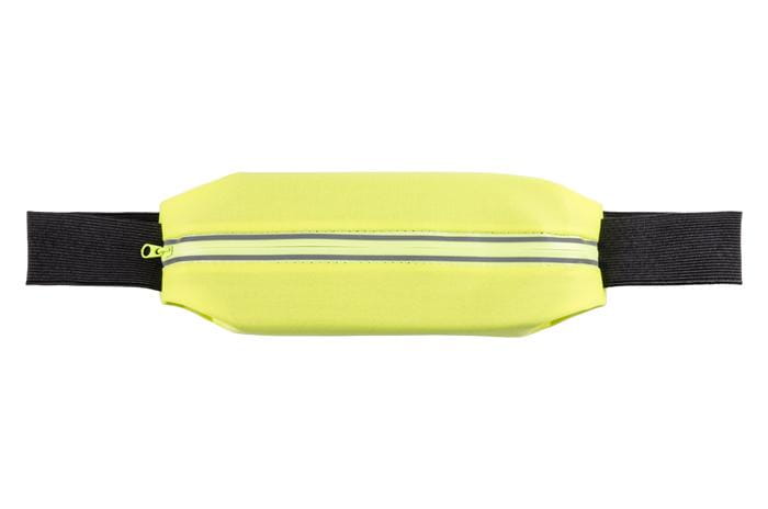 Sportowa elastyczna torebka biodrowa TROTE przyda się każdemu kto lubi aktywnie spędzać czas. Jaskrawy kolor oraz elementy z taśmy odblaskowej zapewnią każdemu użytkownikowi widoczność po zmroku. Torebka wyposażona jest w kieszonkę z wygodnym okienkiem na telefon, dzięki któremu łatwo i szybko można sprawdzić ważne informacje na telefonie. Dodatkowo torebka ma wyjście na słuchawki.