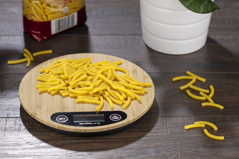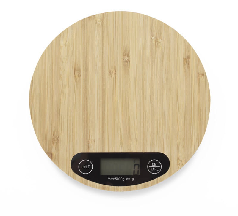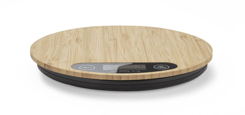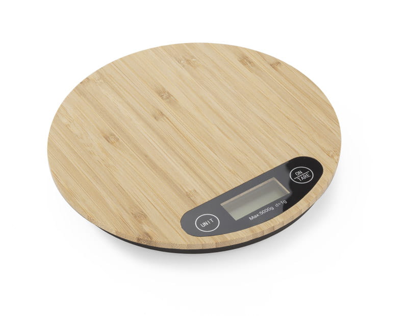 Elektroniczna waga kuchenna CIRCA wykończona naturalnym bambusem. Informacje techniczne: - maksymalny zakres pomiaru to 5 kg, - dokładność pomiaru do 1 g, - jednostki miary: kg/lb oraz ml/oz. - funkcja tary - wymaga baterii AAA x 2 szt. Baterie nie są dołączone.