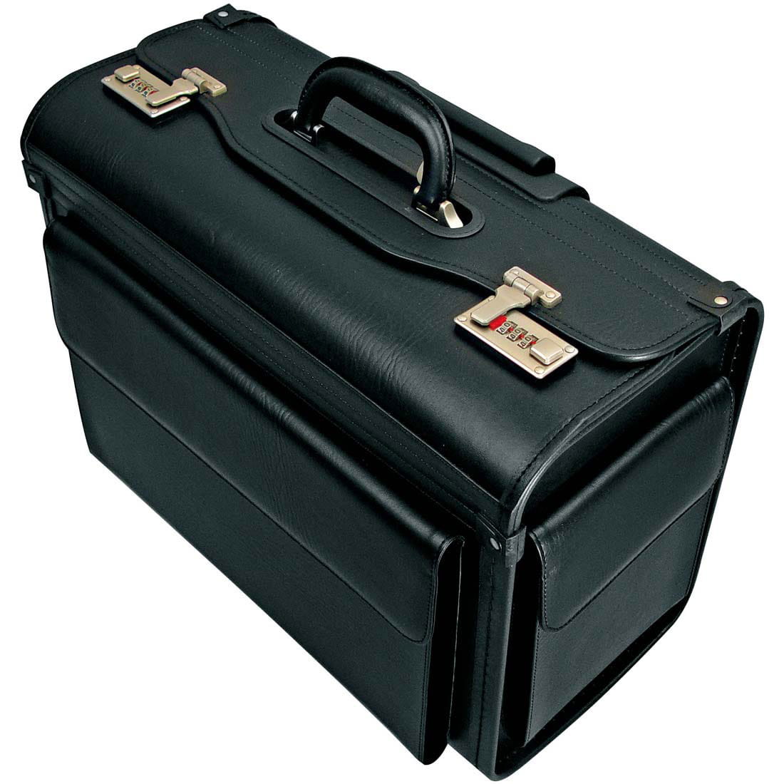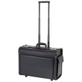 Walizka na dokumenty z kolekcji CrisMa, wykonana ze skóry ekologicznej, została wyposażona w kółka i długi teleskopowy uchwyt.