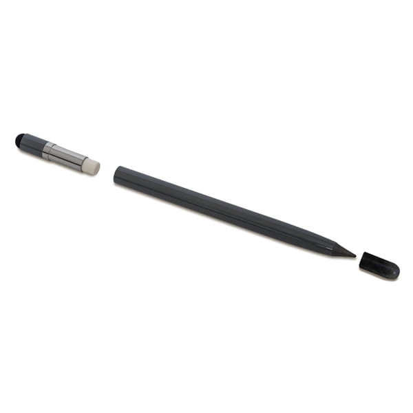 Długowieczny ołówek/długopis z gumką i końcówką do ekranów dotykowych. Długość pisania odpowiada 100 zwykłym ołówkom.