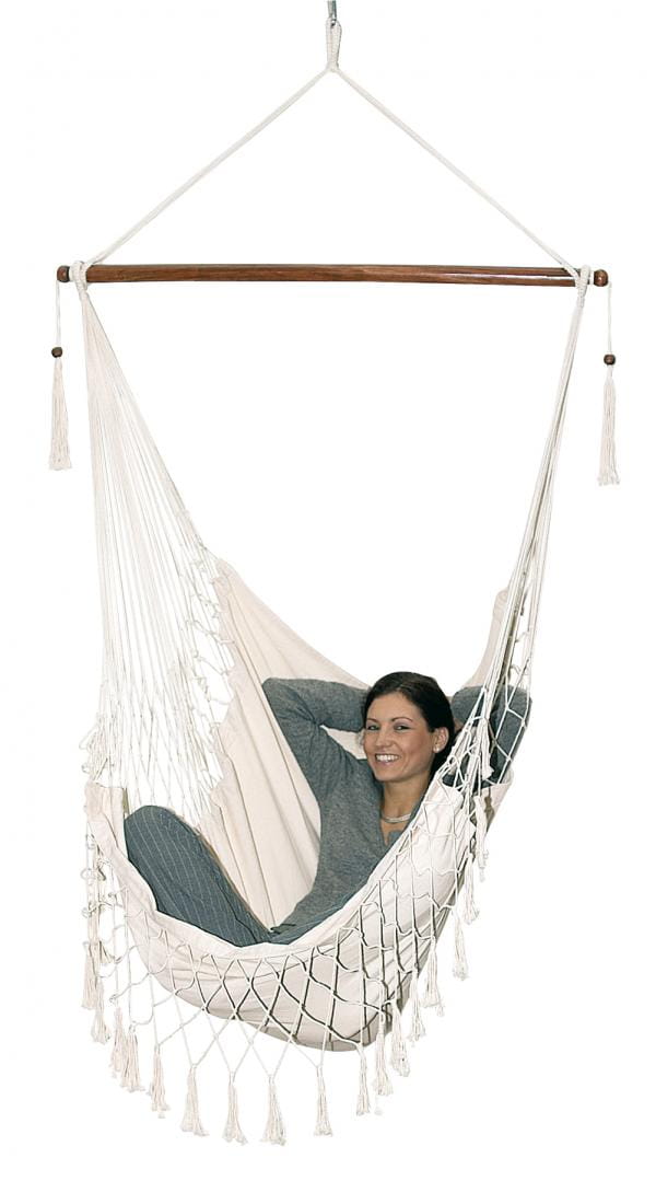 Wiszące krzesło HANG OUT na mocnym drewnianym stelażu z linami (wytrzymałość do 100 kg).