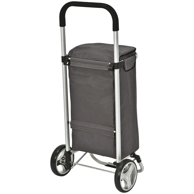 Składany wózek na zakupy uszyty z poliestru, z kieszenią termiczną. Rama wykonana z aluminium, posiada specjalny haczyk, dzięki któremu można go zawiesić na wózku sklepowym.