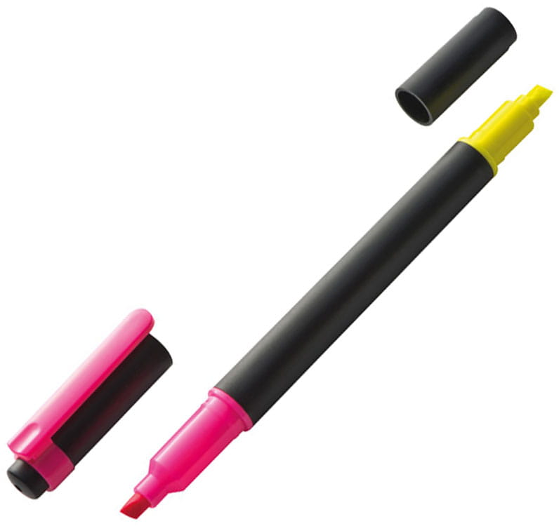 Dwustronny zakreślacz w dwóch neonowych kolorach - różowym i żółtym.