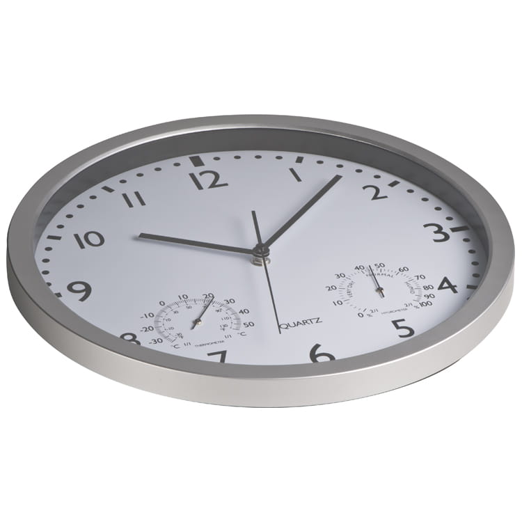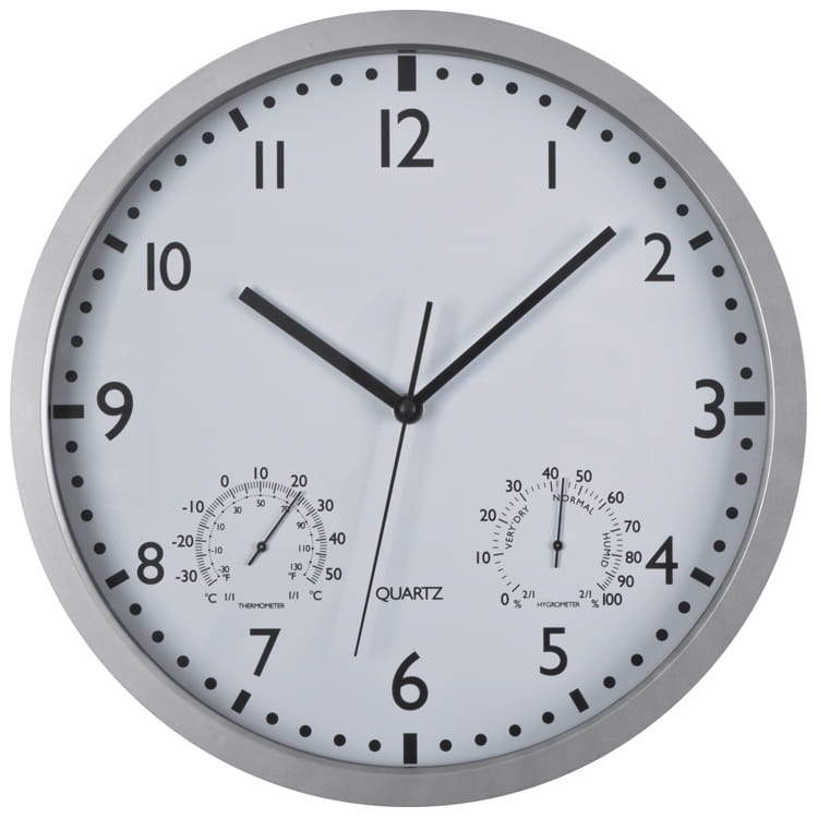 Klasyczny zegar ścienny CrisMa z termometrem i higrometrem. Tarczę można łatwo wyjąć z obudowy.