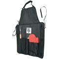 Nasz praktyczny zestaw do grilla zawiera wszystko, czego potrzebujesz: rękawicę, widelec, szczypce oraz metalową łopatkę z drewnianą rączką. Pakowany w nylonową torbę.