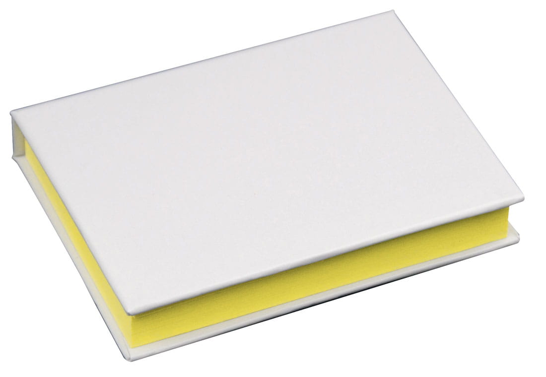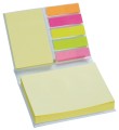 Zestaw karteczek samoprzylepnych, składający się z bloku (100 kartek) do notatek i karteczek do markowania, po 25 sztuk w każdym kolorze. Zestaw umieszczono w białym, twardym etui.