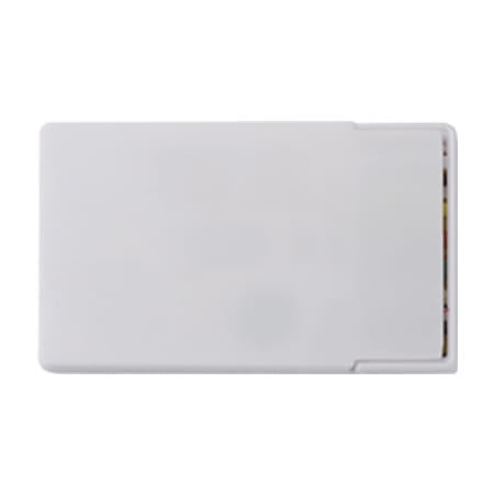 Podróżny zestaw do małych poprawek krawieckich. Nożyczki, igły, nici, agrafki, nawlekarka do nici i zapasowe guziki zostały umieszczone w pudełku w kształcie karty kredytowej.