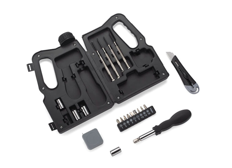 KANNIS to zestaw, w którym znajduje się wiele przydatnych narzędzi: cztery śrubokręty precyzyjne, nożyk do tapet, zwijana miara, uchwyt, cztery klucze nasadkowe z przejściówką i dziewięć bitów. Wszystko razem zamknięte jest w charakterystyczne etui w kształcie...